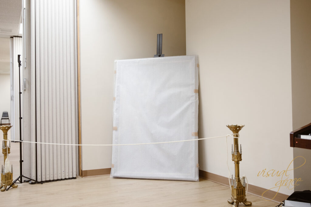 During the planning of this special painting delivery and dedication event, I had the privilege to chat with Erika, who had both the desire and will to bring sacred art into her home church. As a sacred artist, I trust the Holy Spirit has a plan for my work. It was such a privilege to get to learn more about the experience of being 21st century patrons of the arts, and what it looks like to bring sacred art into one’s parish community.