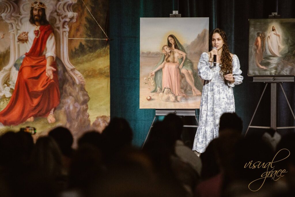 I felt led to share my own story of how Our Lady came to me and healed particular wounds of my past. As she listened, tears started to well up in her eyes. She told me of her own past, and her own wounds. How she felt that God brought her there to see this art and hear this story so she could receive healing for that time. She told me, “I’m so grateful to be stopped in my tracks by this art.”