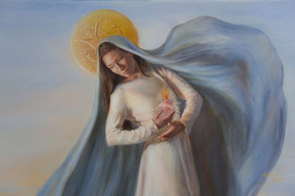 It can be hard to trust that Our Lady is at work in our lives. Surround yourself with beautiful art to serve as reminders of this truth. Explore more Kate’s work for original sacred art meant to bring joy and peace to your heart. Totus Tuus is available now in the shop!